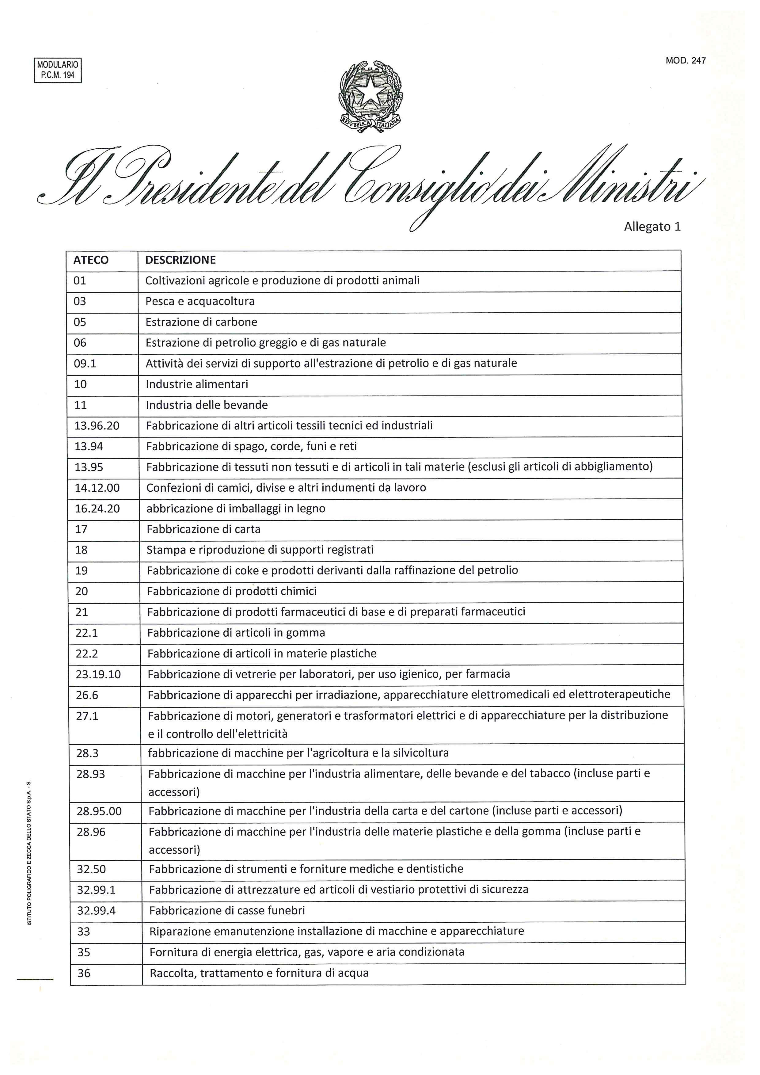 Qui sotto lelenco aggiornato delle attività produttive che possono tenere aperto: